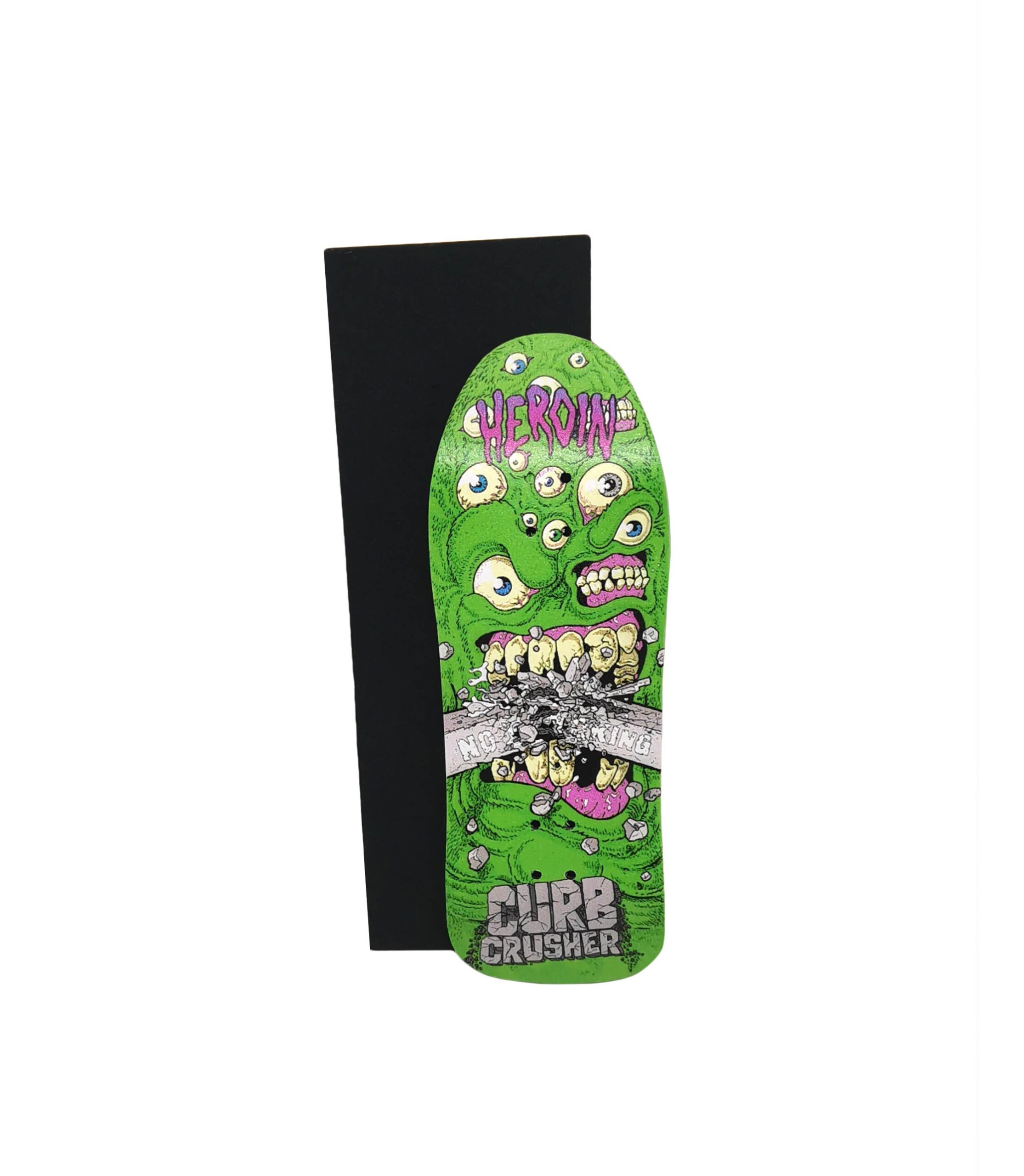 This deck has been again produced in limited quantity with one of the last Heroin Skateboards graphic (@FOSGRAPHICS creation) and we managed to keep the real skateboard deck shape on a 35mm wide deck, 5 compressed maple plys, medium concave. Delivered with its rectangle rip tape 35mm to positin and cut, like on a real skate deck! You can also use real skateboard griptape!