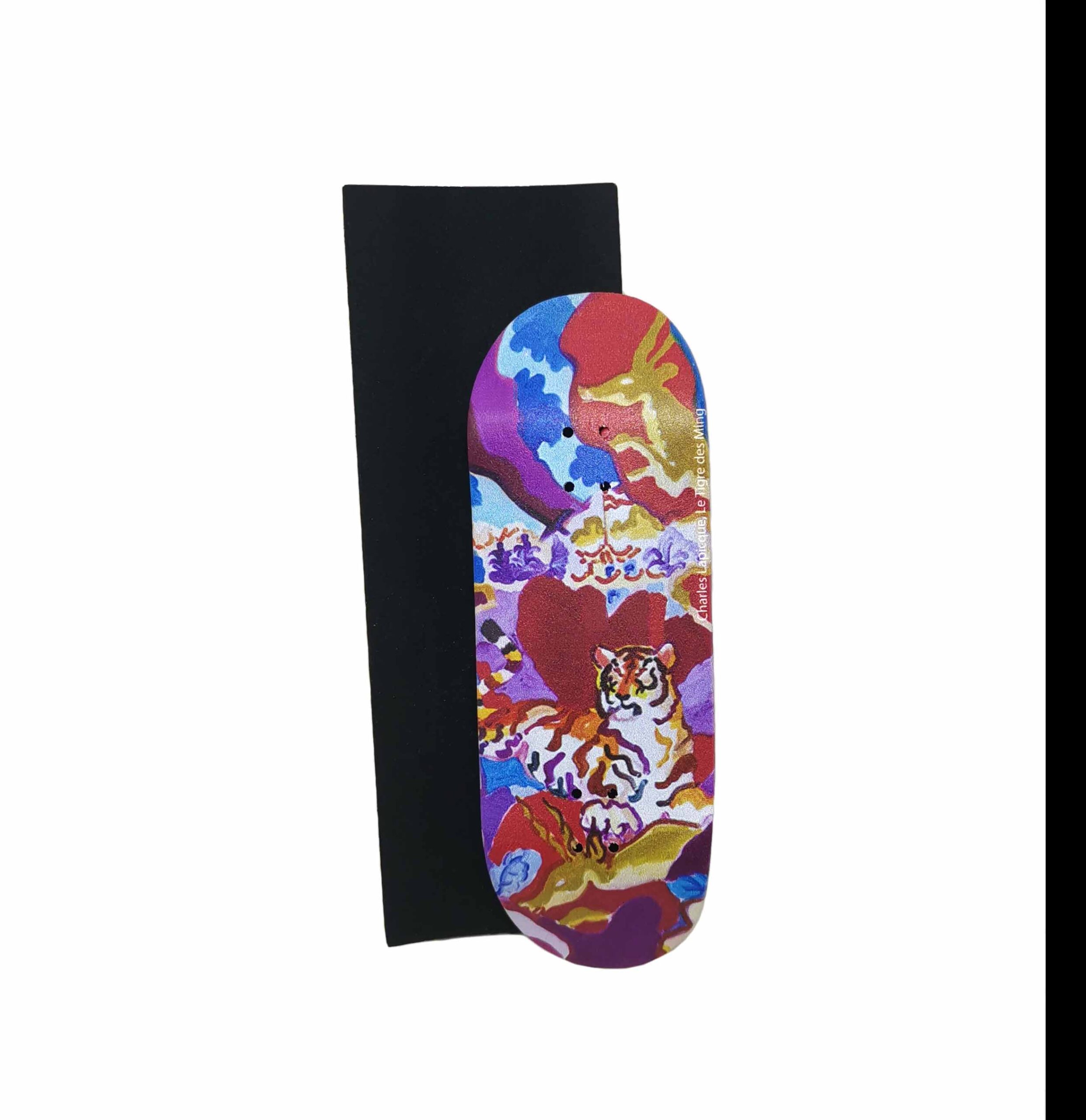 This FB deck has been produced only once for the Dijon Beaux-Arts Museum shop, in really limited quantity. The UV print graphic represents a great painting from Chrales Lapicque, titled “Le Tigre des Ming”. It is 98mm x 34mm, medium concave and delivered with a quality rectangle rip tape to cut and position. You can also use real skateboard grip tape and collect it with the other paintings produced.
