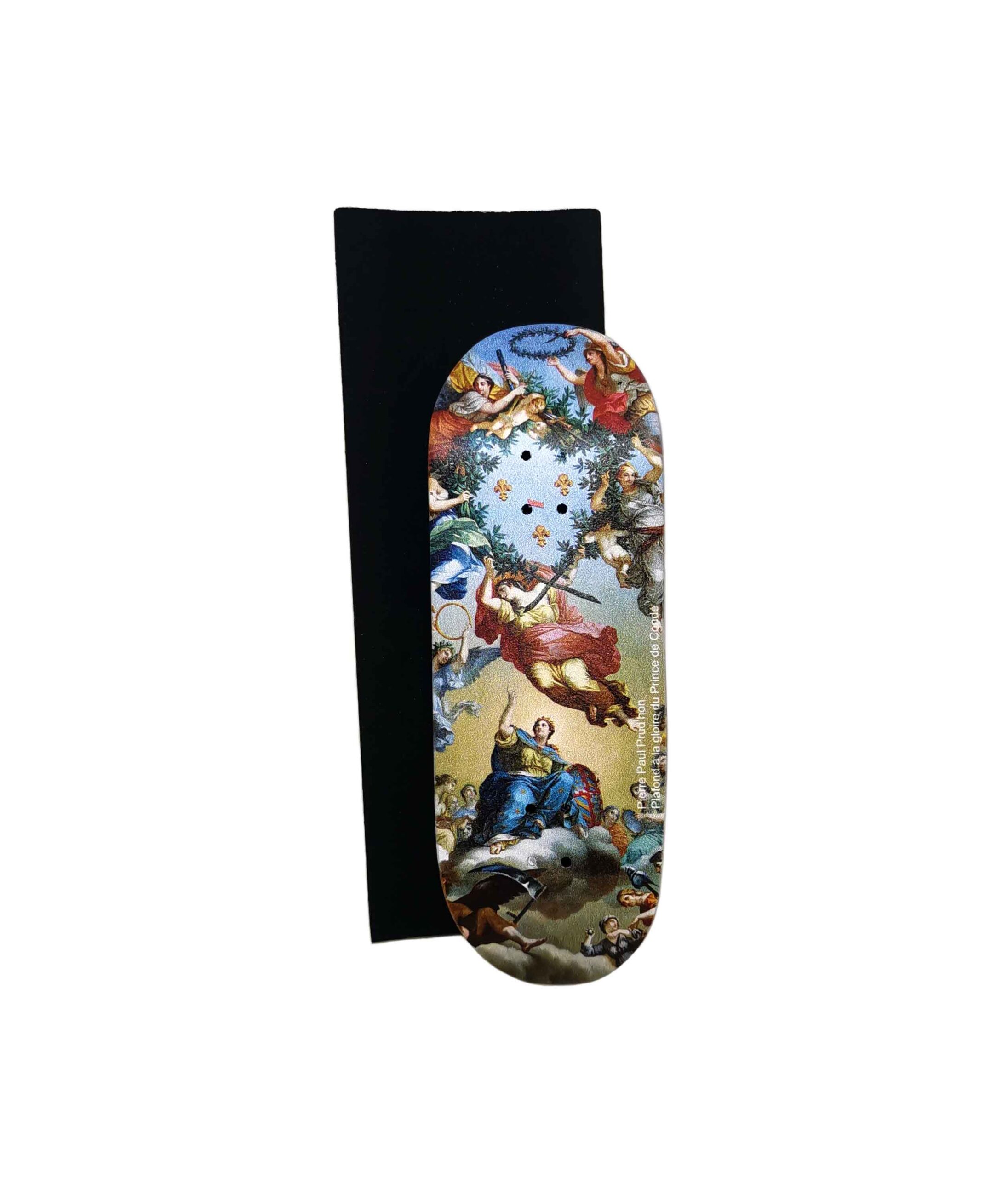 This FB deck has been produced only once for the Dijon Beaux-Arts Museum shop, in really limited quantity. The UV print graphic represents a great painting from Pierre Paul Prud’hon, titled “Plafond à la gloire du Prince de Condé” (famous ceiling from the Dijon Museum). It is 98mm x 34mm , medium concave and delivered with a quality rectangle rip tape to cut and position. You can also cuse real skateboard grip tape and ollect it with the other paintings produced.