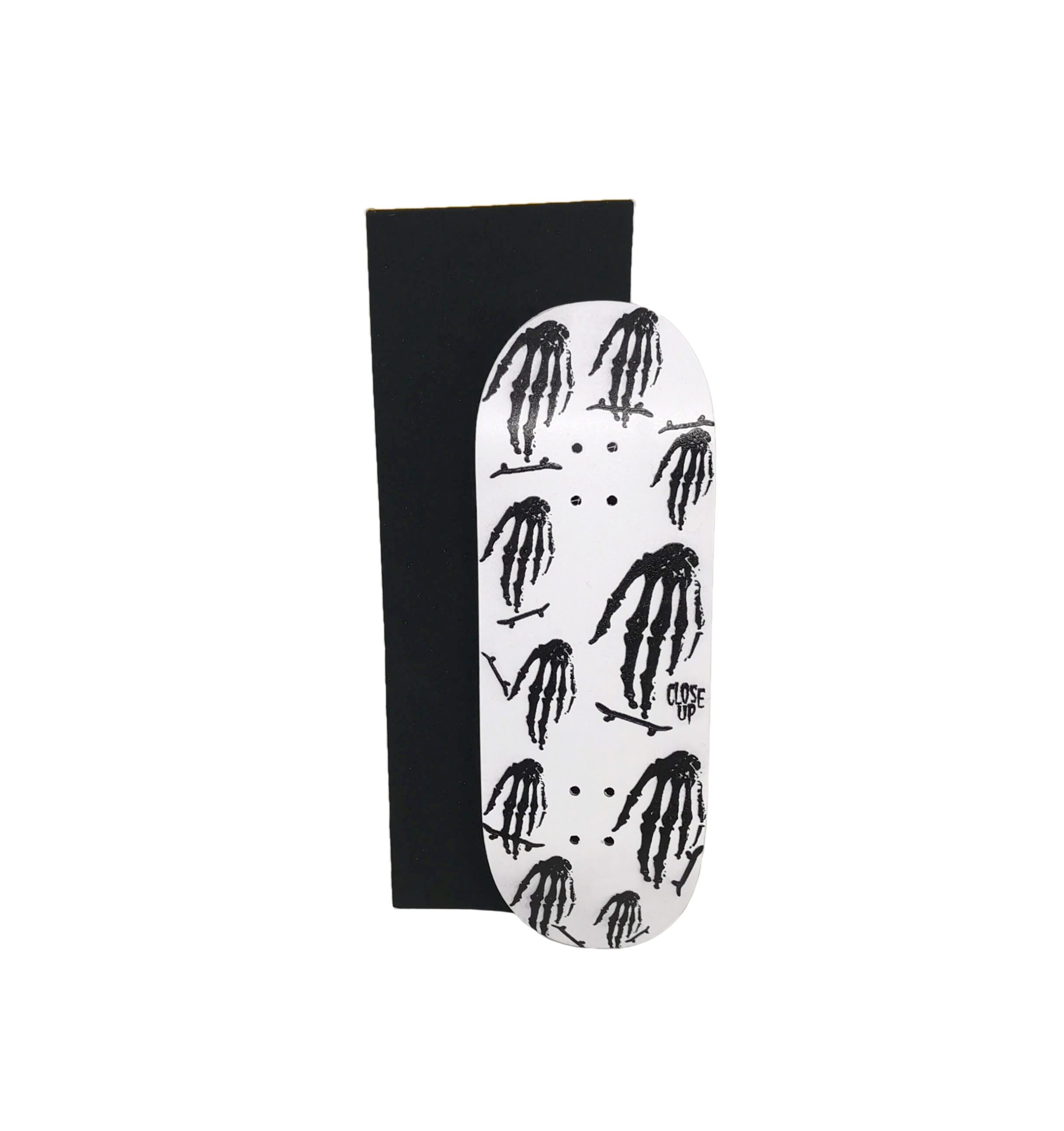 This new Close Up deck has the famous “Skull Hand mozaic” graphic, on a 34mm wide fb deck, medium concave, 5 compressed maple plys. Delivered with a rectangle riptape to position and cut, you can also use some real skateboard grip tape!